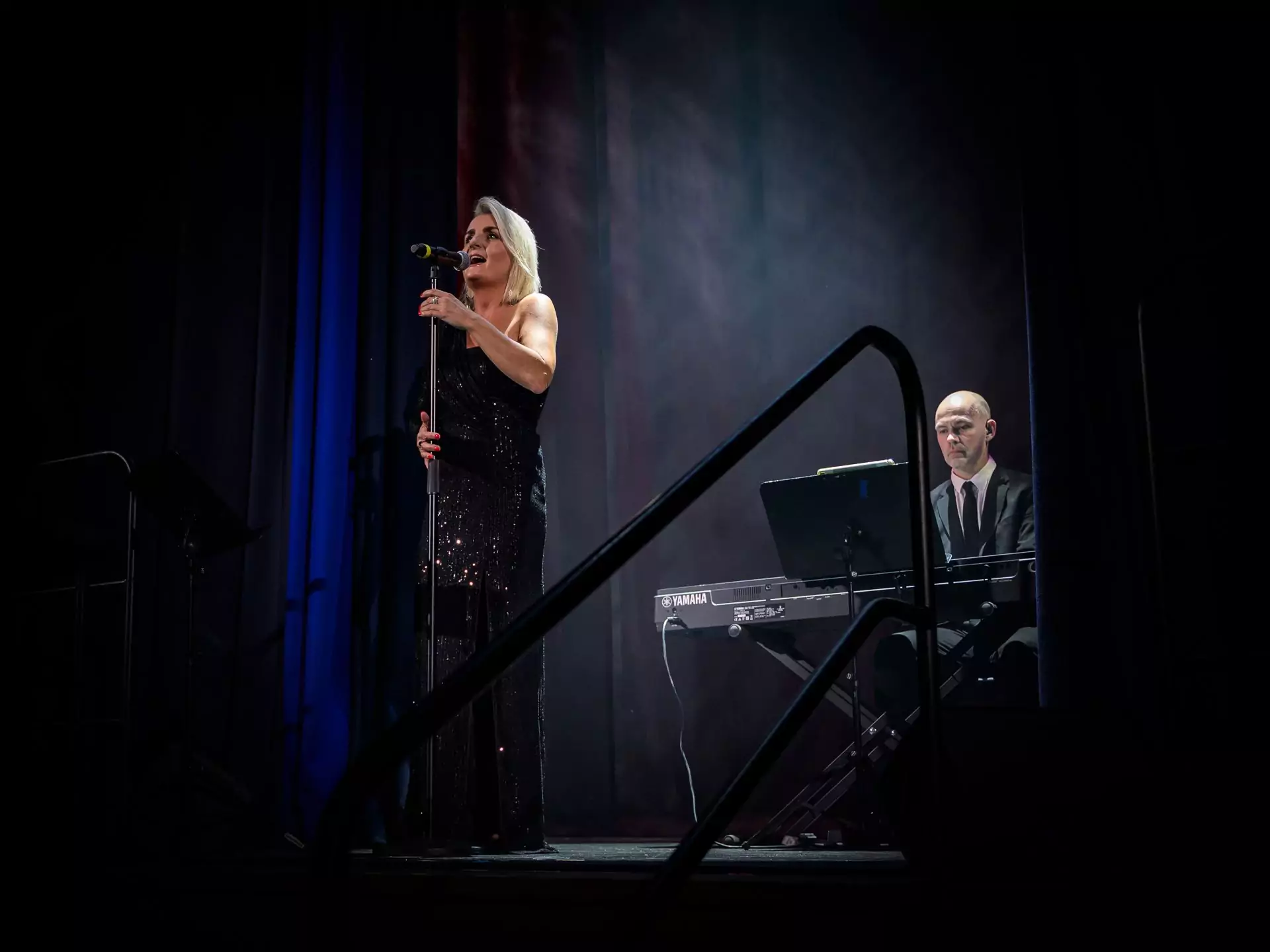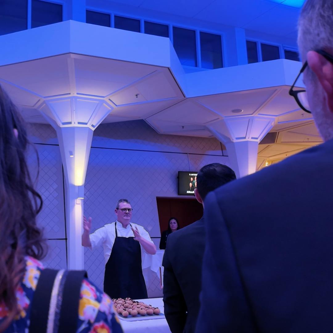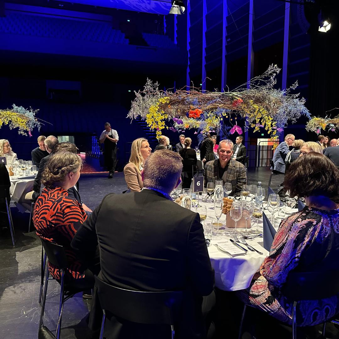 Aftenen begyndte med velkomstdrink og en tur på scenen, middag og netværk i teaterfoyeren, hvor aftenens hovedpersoner kiggede forbi og gav et nummer, inden vi sammen fik den fulde koncertoplevelse i salen.
