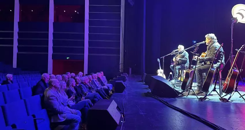 Da Michael Falch og Poul Krebs sammen lagde vejen forbi Musikhuset Esbjerg, fik vores samarbejdspartnere en helt særlig oplevelse inden koncerten. Aftenen begyndte nemlig helt eksklusivt med en intim musikoplevelse, hvor vi fik lov til at overvære og høre om, hvordan Krebs og Falch forbereder sig inden en koncert.