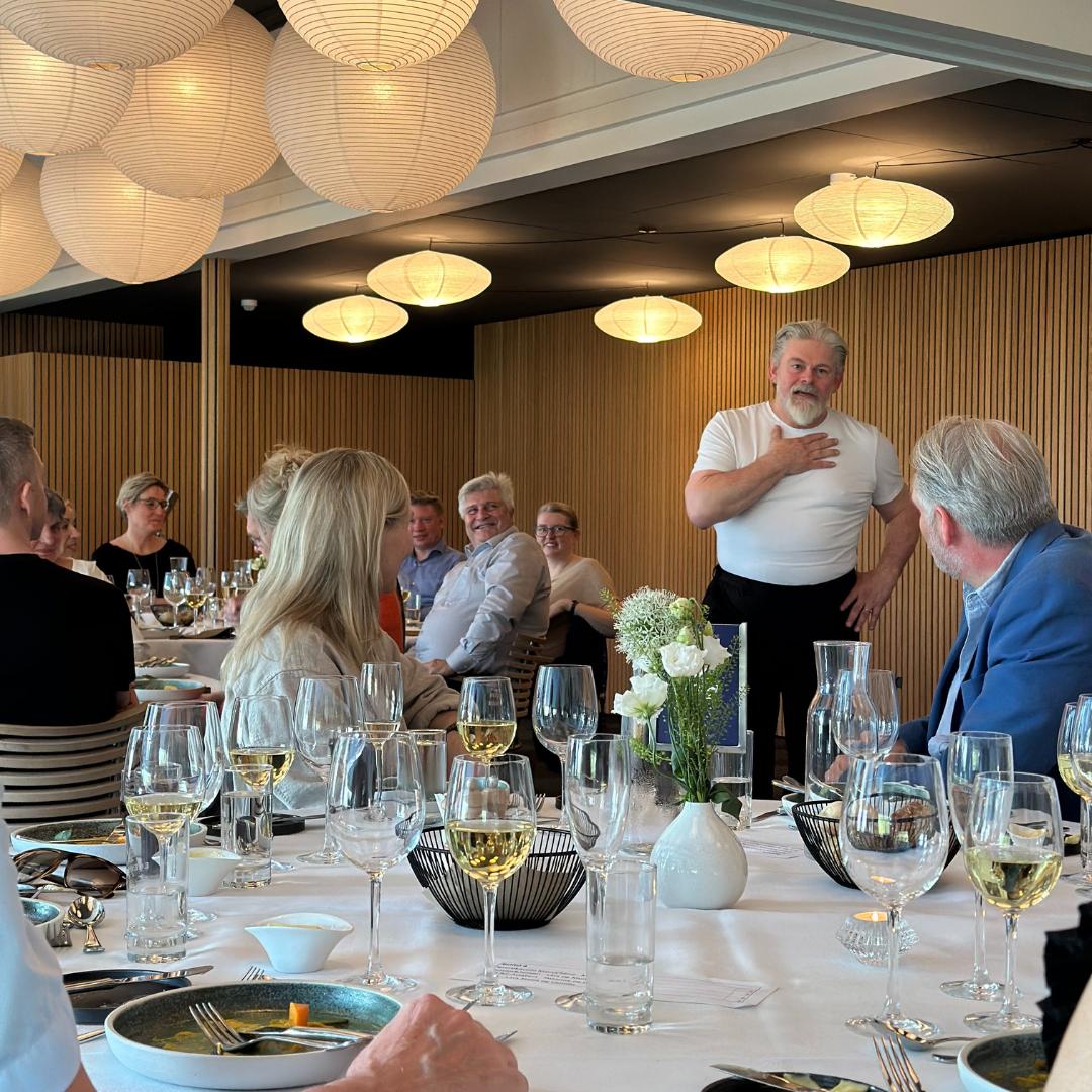 Showet skulle partnerne naturligvis også opleve, men først efter at de havde nydt en tre-retters middag lavet af køkkenchef Jacob Møller Justesen, og efter at de havde hygget sig i de andre partneres selskab.