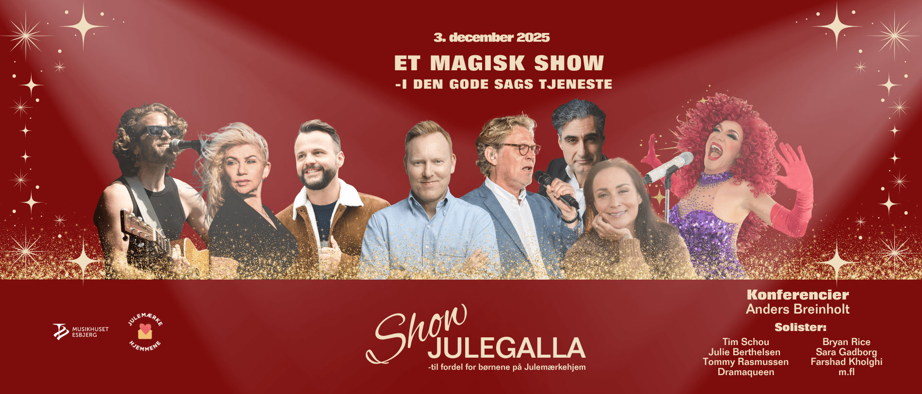 3. december 2025 20:00Oplev et eventyrligt julegallashow, når Musikhuset Esbjerg ruller den røde løber ud til fordel for de danske Julemærkehjem
